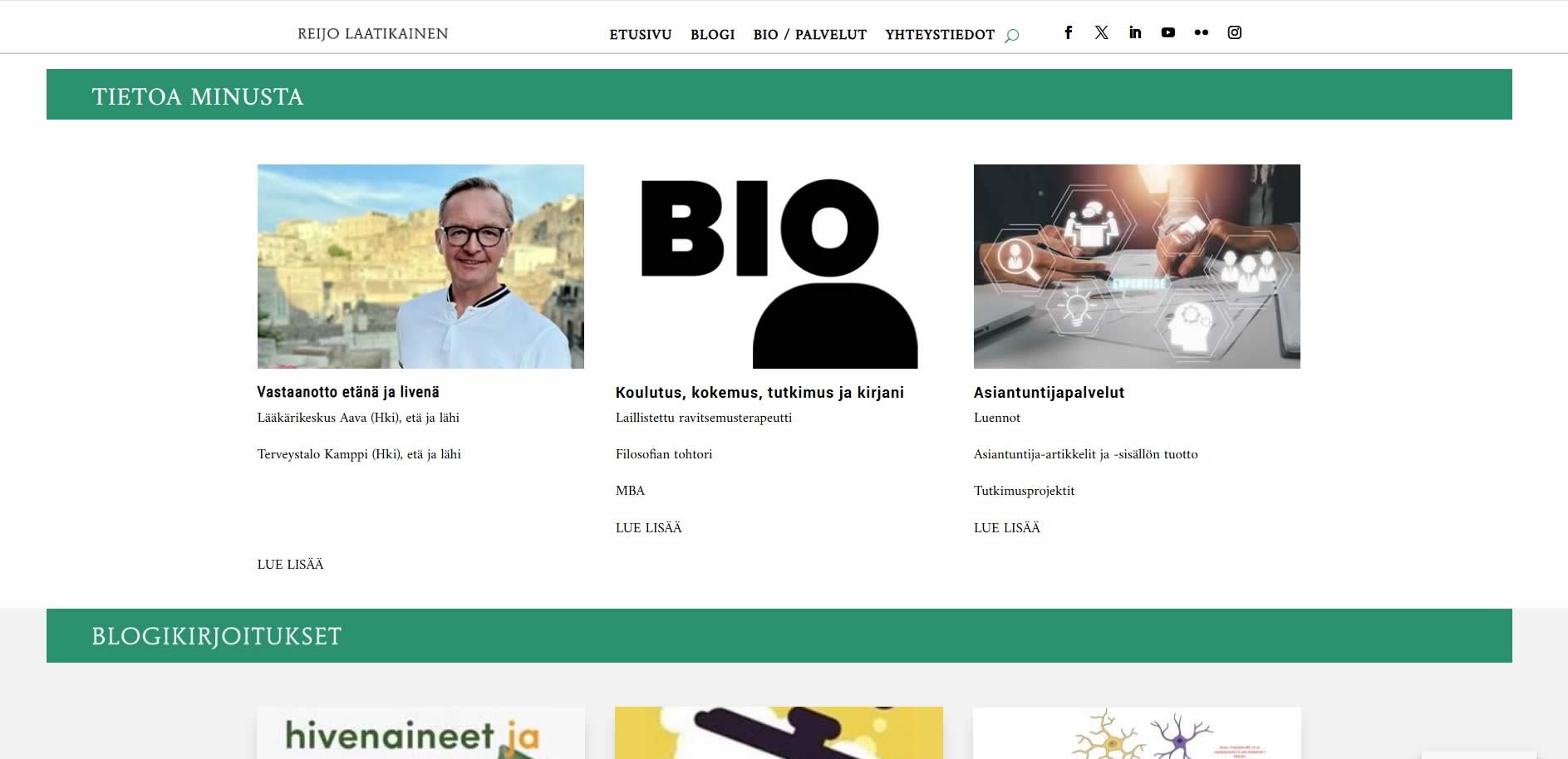 Suunniteltuja ja toteutettuja verkkosivustoja, verkkokauppoja ja blogisivustoja.